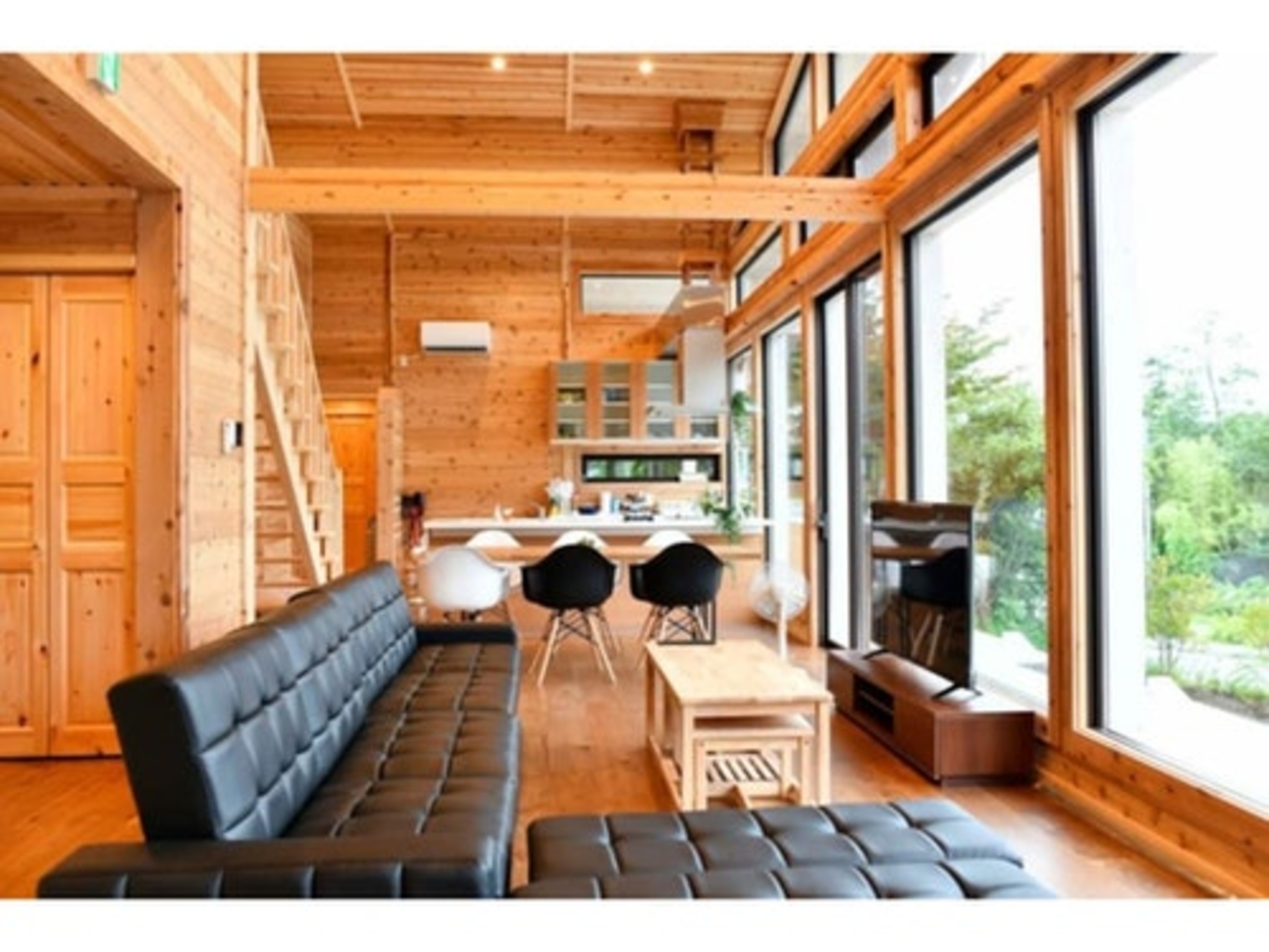 「Private villa J」は、のんびりとしたひとときを過ごせる貸切のプライベートヴィラです。きれいに整えられたお部屋には、ゆったりと座れるソファーや薪ストーブが備わっており、「広い庭と設備が充実した美しい家」とのクチコミも寄せられています。バーベキュー機材や焚き火台も完備されているので、家族や友人と美味しい食事を楽しんだり、焚き火を囲んでしっとりと語らう時間を過ごすのもおすすめです。森林に囲まれた自然豊かな環境で、日常から離れた贅沢なひとときをお楽しみください。